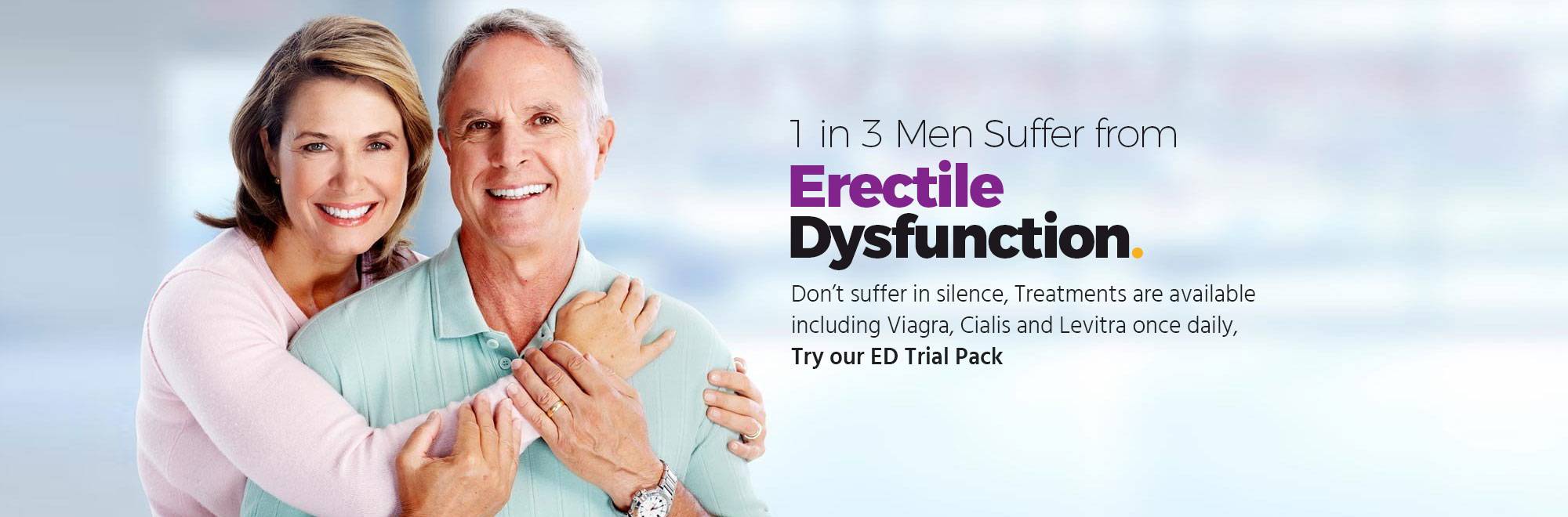 Don’t suffer in silence, Treatments are available including Viagra, Cialis and Levitra once daily, Try our ED Trial Pack
